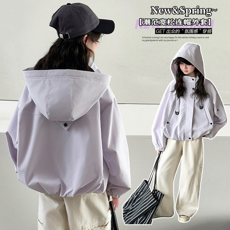 女童风衣外套春装2026新款儿童春秋上衣中大童连帽冲锋衣休闲夹克