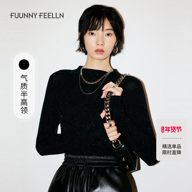 【折扣新降】【水溶羊毛衫】FF仿佛冬季新款黑色针织羊毛衫女打底