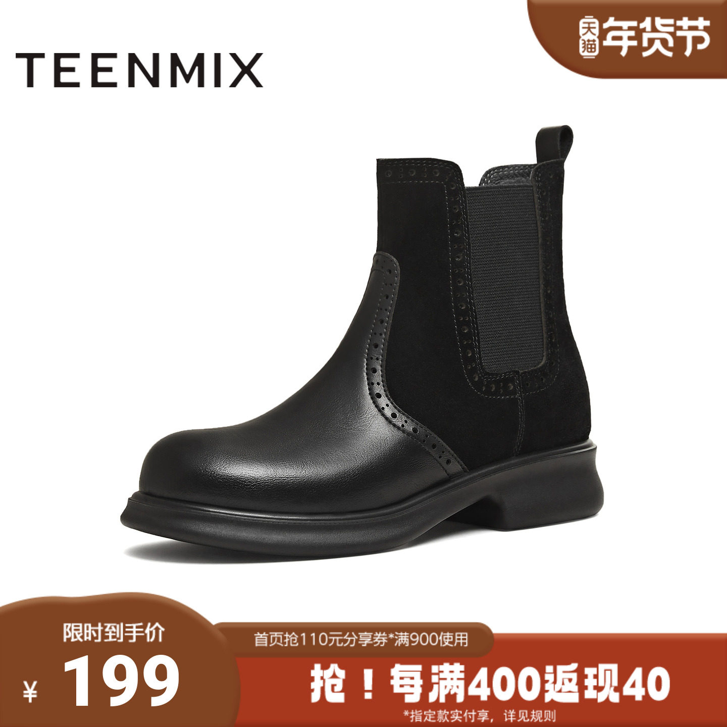 天美意2025冬新款平跟英伦复古百搭短靴女切尔西靴KQX23DD5