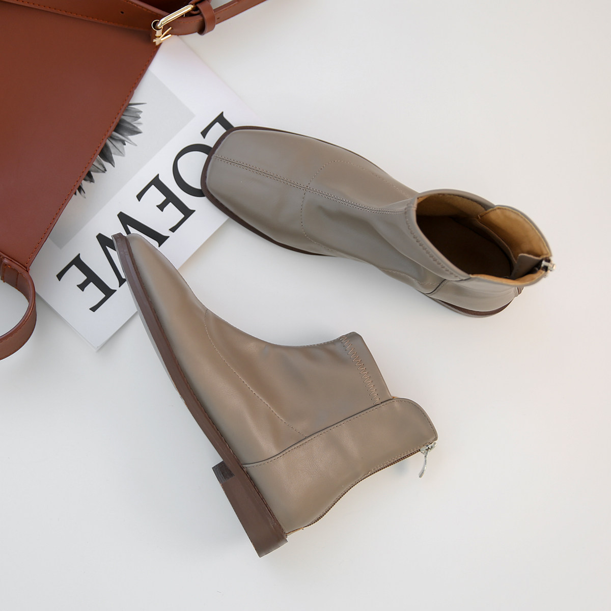 韩国平跟短靴女2025秋冬新款平底百搭粗跟瘦瘦靴方头软底拉链袜靴