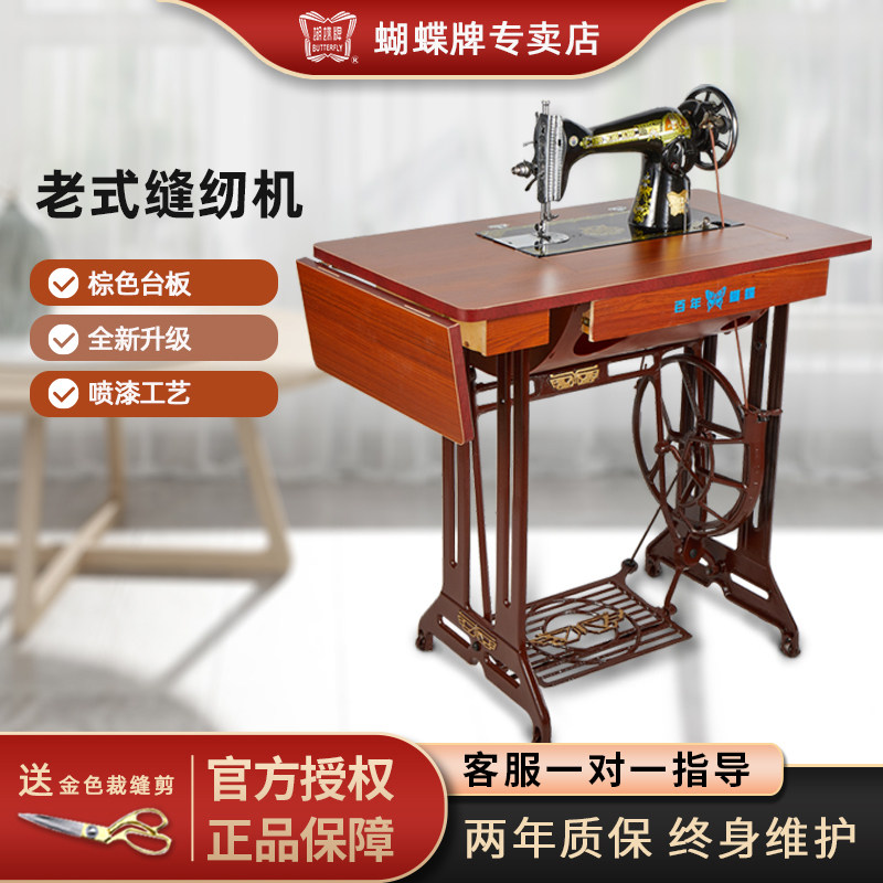 正宗蝴蝶牌老式缝纫机家用脚踩手动脚踏裁缝机可电动厚薄通吃衣车
