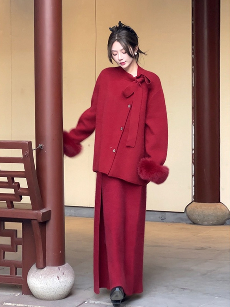 - 针织衣裙套装