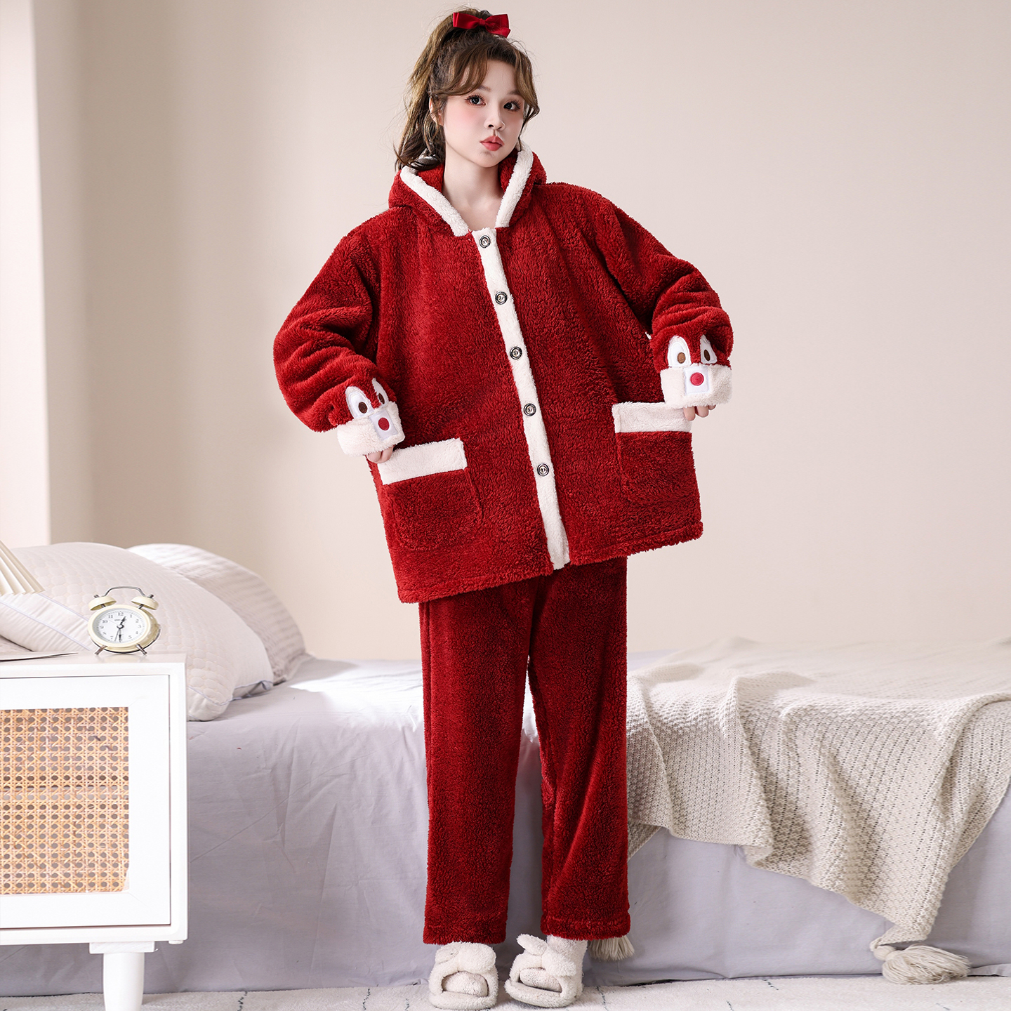 - 睡衣女冬加厚 珊瑚绒夹棉
