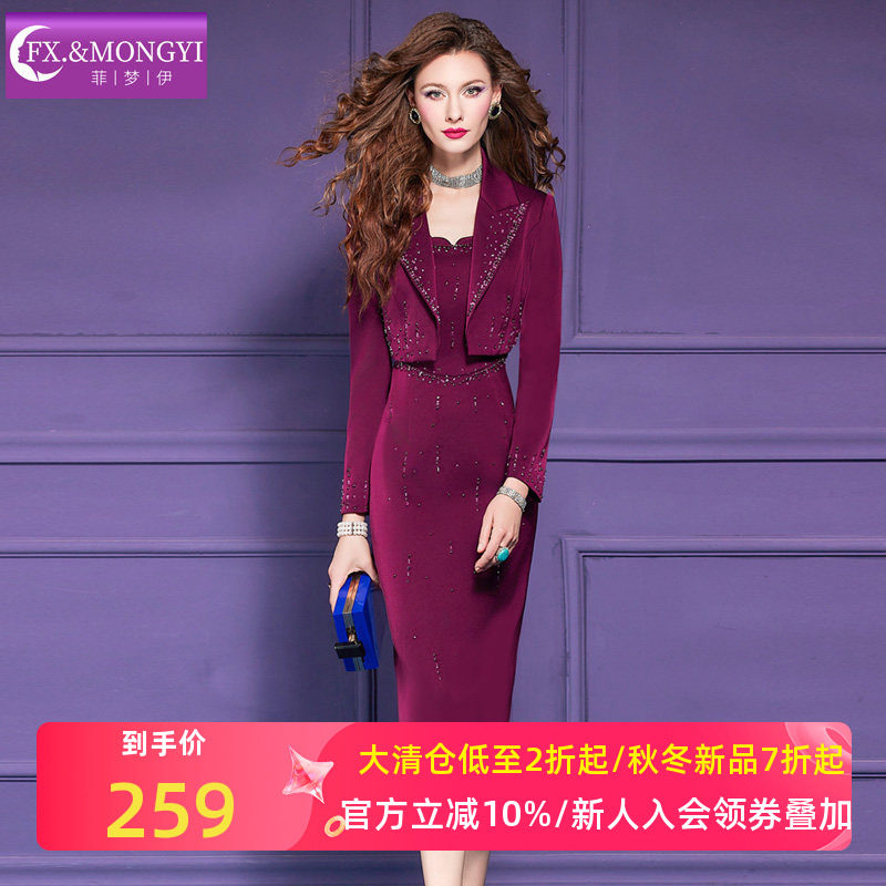 菲梦伊大方得体一整套女秋季钉珠轻熟气质无袖连衣裙配西装短外套