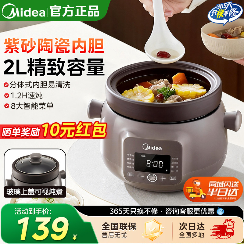 美的电炖锅紫砂陶瓷电砂锅全自动煲汤煮粥多功能家用小型2026新款