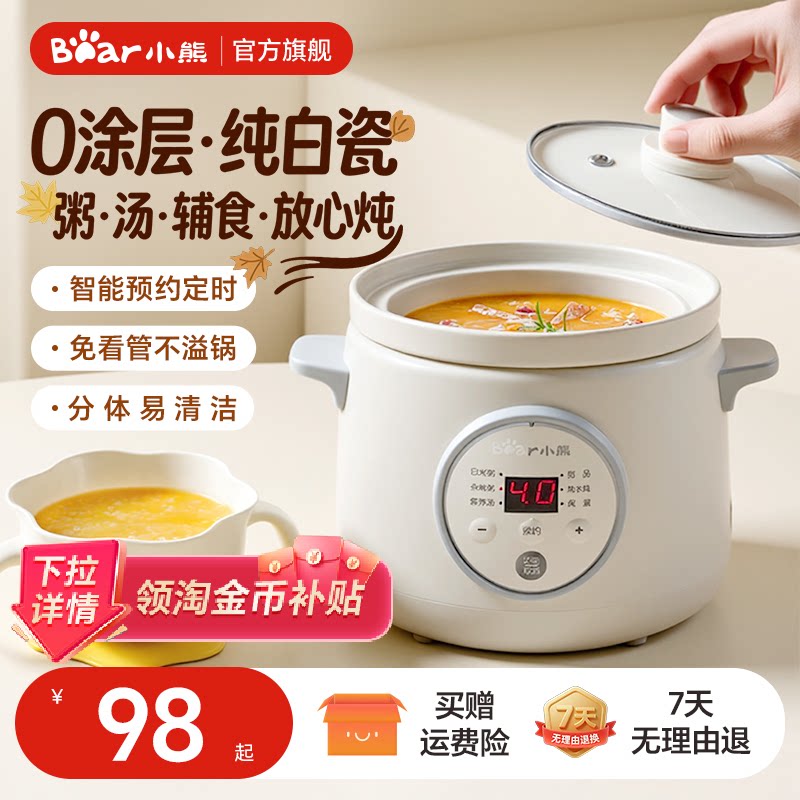 小熊电炖锅陶瓷煲汤炖汤神器家用全自动小型婴儿宝宝辅食专用炖盅