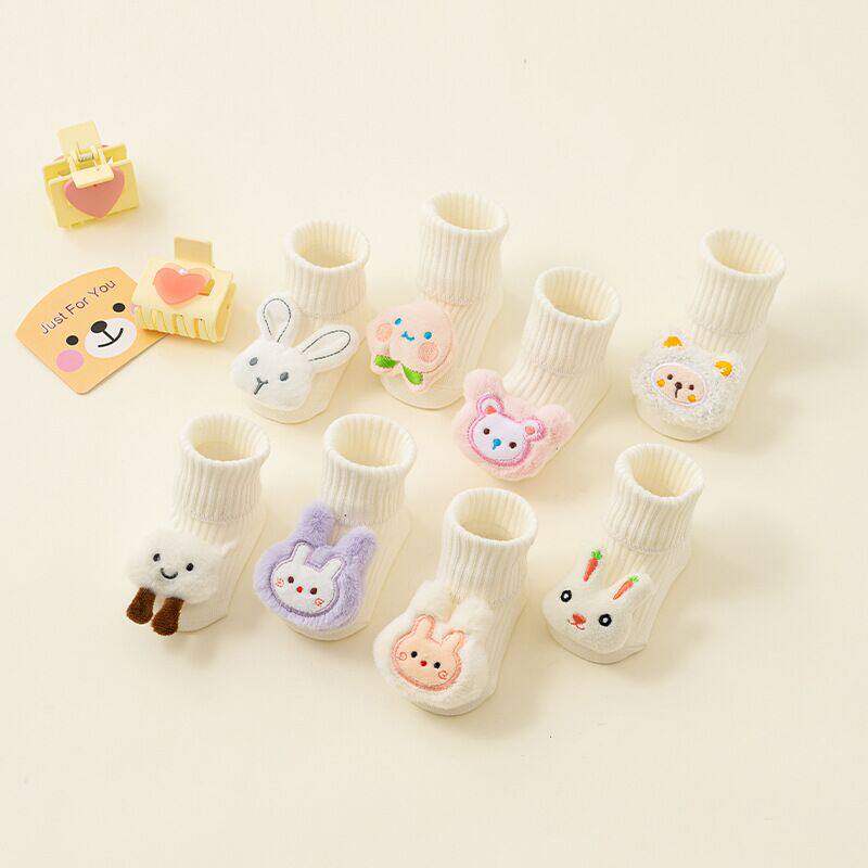 春秋宝宝袜子0-6-12月新生婴儿防滑地板袜1-3卡通公仔短袜袜子鞋