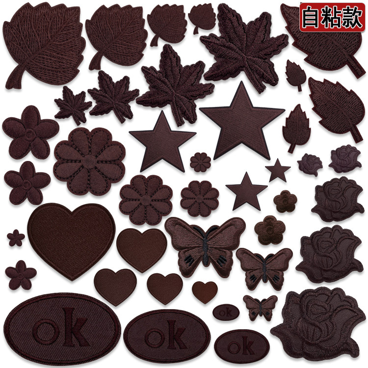 大小号自粘深咖色刺绣贴花补丁贴布贴衣服羽绒服裤子补破洞图案贴