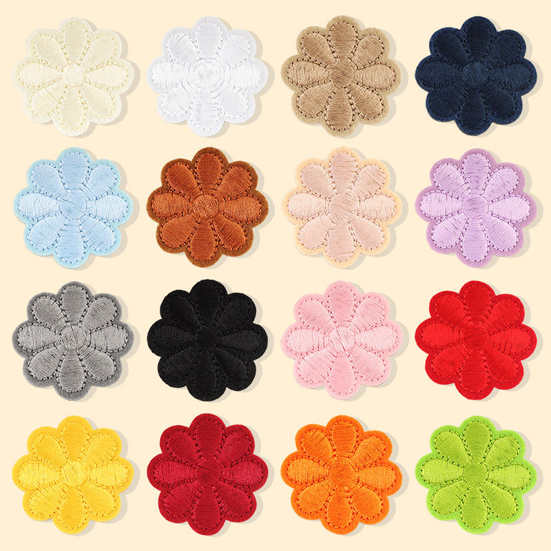 自粘雏菊花朵刺绣布贴衣服破洞补丁贴装饰刺绣贴熨烫贴花DIY手工