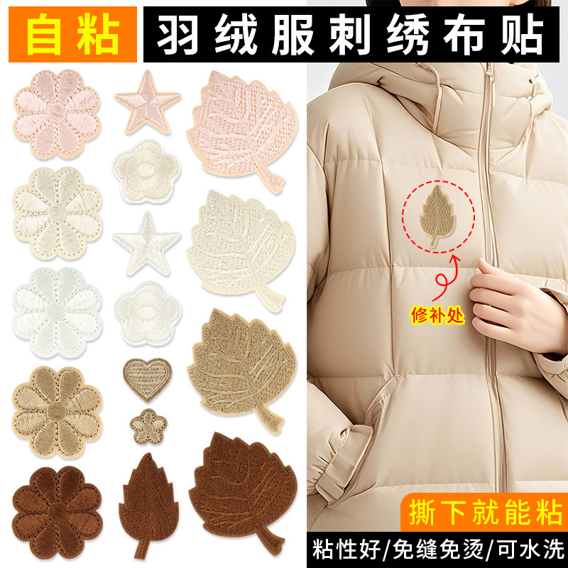 羽绒服补丁贴自粘免缝衣服破洞无痕修补贴花贴片花朵叶子刺绣布贴