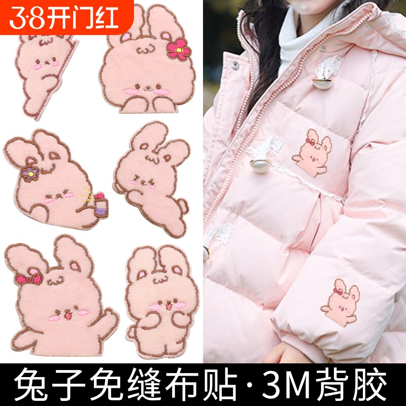 自粘羽绒服补丁贴免缝卡通刺绣无痕修复儿童衣服破洞修补贴花兔子