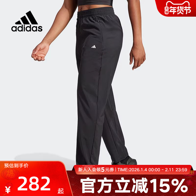 adidas阿迪达斯运动裤新款女子休闲跑步健身梭织直筒长裤 IL6984