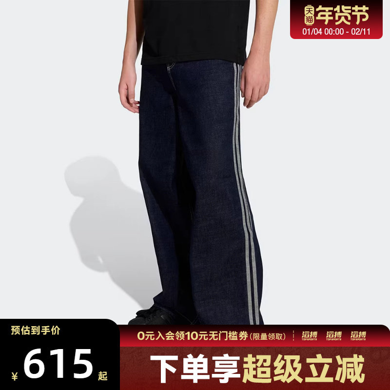 adidas阿迪达斯三叶草男子运动休闲宽松阔腿牛仔长裤KS6916