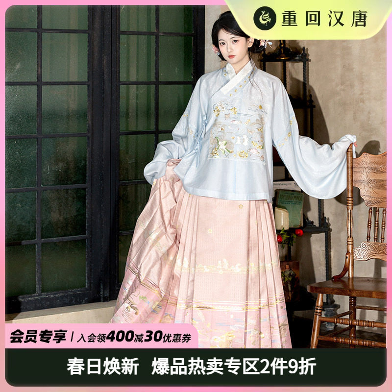 鼎尚原创【童话镇】汉洋折衷汉服女套装明制粉蓝色冬装马面裙新款