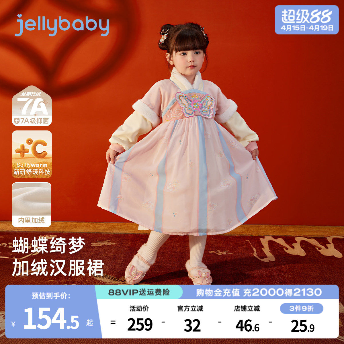 巴拉巴拉女童汉服改良襦裙国风连衣裙冬装裙子绣花洋气时尚新中式