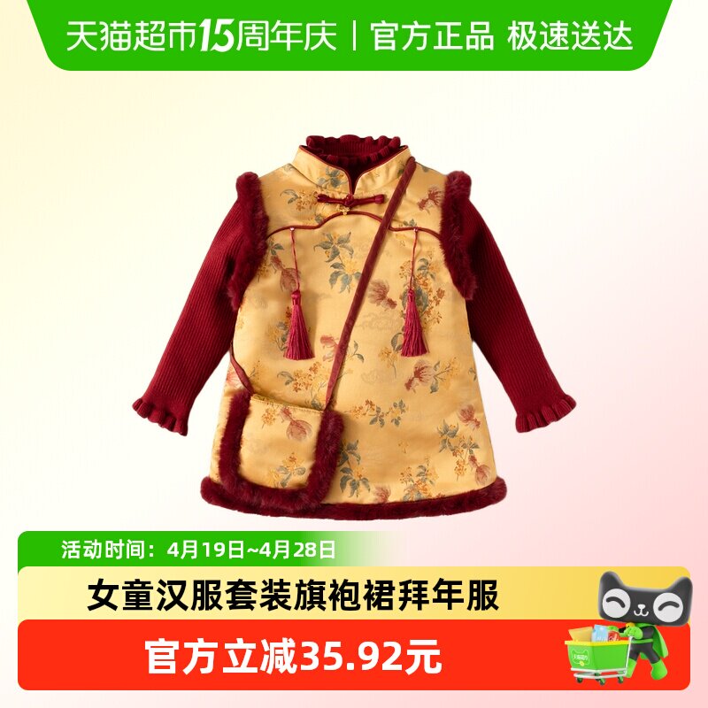 班喜迪拜年服女童汉服冬装宝宝旗袍裙套装儿童周岁礼服中国风唐装