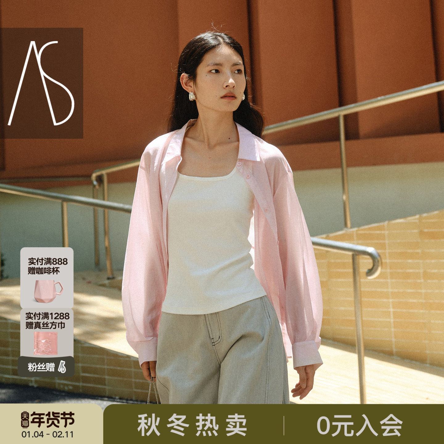 Basic House/百家好秋冬新款宽松时尚个性高级感翻领长袖纽扣衬衫