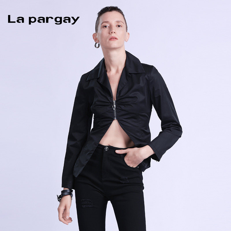 纳帕佳长袖衬衫2025春季新款女式黑色个性时尚休闲设计感小众上衣