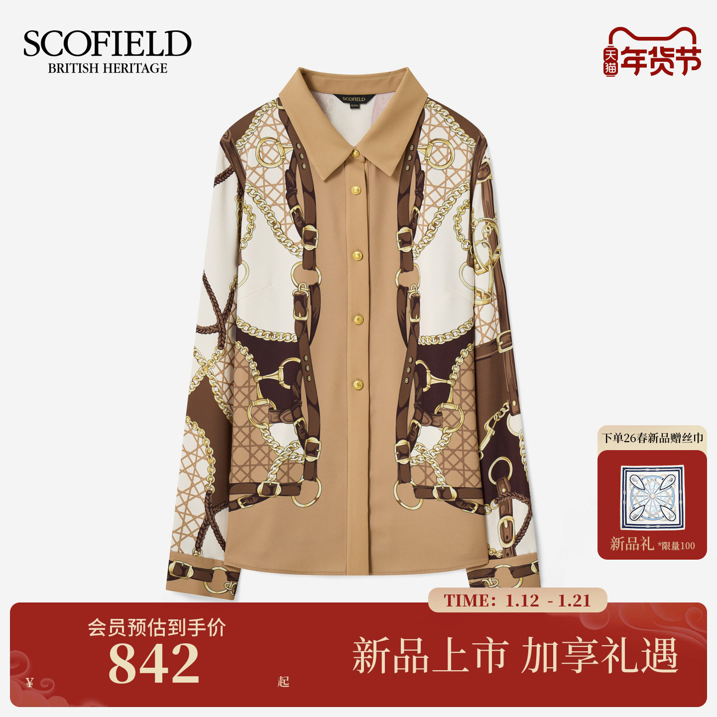 Scofield女装都市个性复古撞色锁链印花长袖衬衫2026春季新品