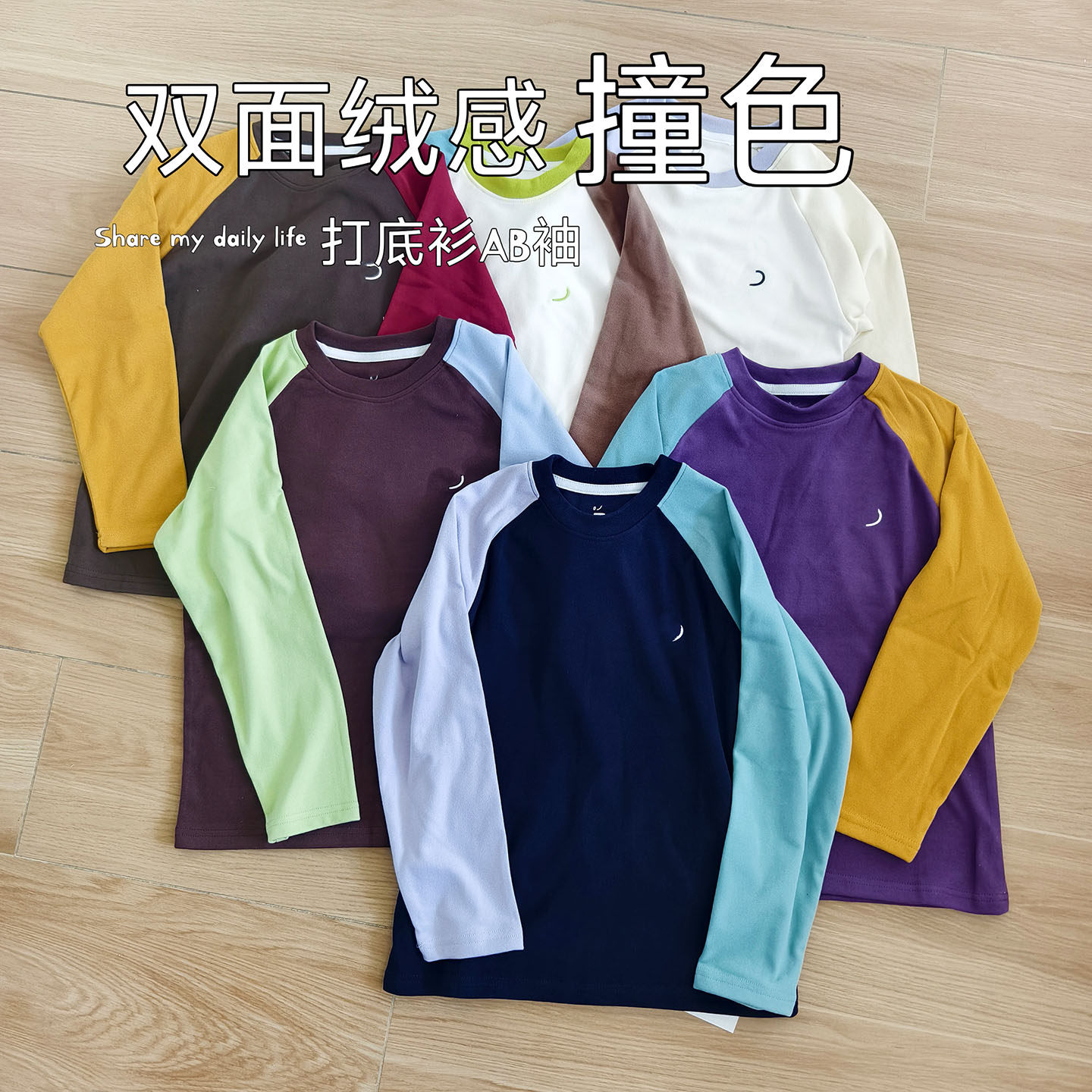 2025秋冬上衣男女童打底衫加厚中大童洋气T恤衫加厚撞色个性长袖