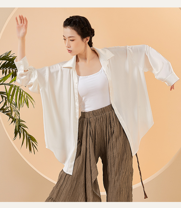 现代舞练功服男女舞蹈生宽松长袖衬衫个性跳舞垂感演出形体集训服
