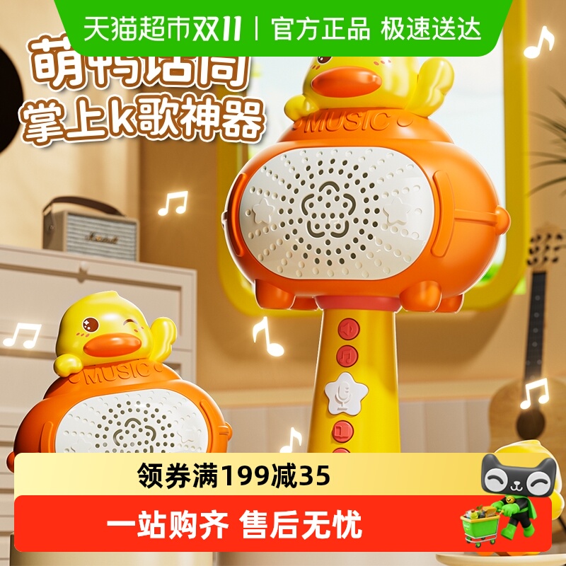儿童话筒玩具麦克风音响一体宝宝早教女孩男孩小黄鸭卡拉ok唱歌机