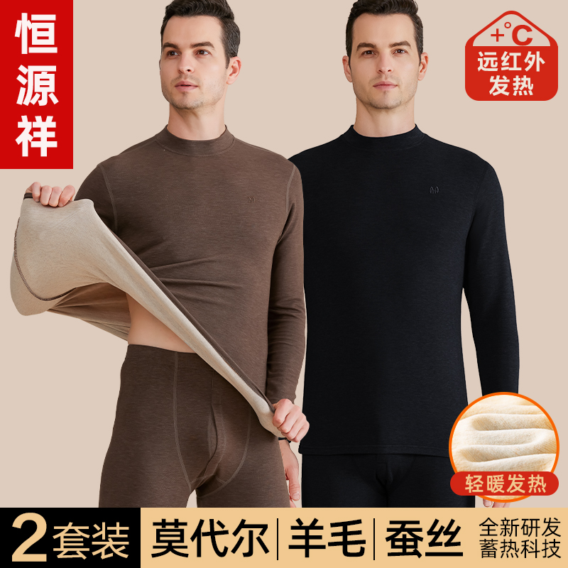 恒源祥加绒加厚保暖内衣男士德绒发热含羊毛款秋衣秋裤套装秋冬季