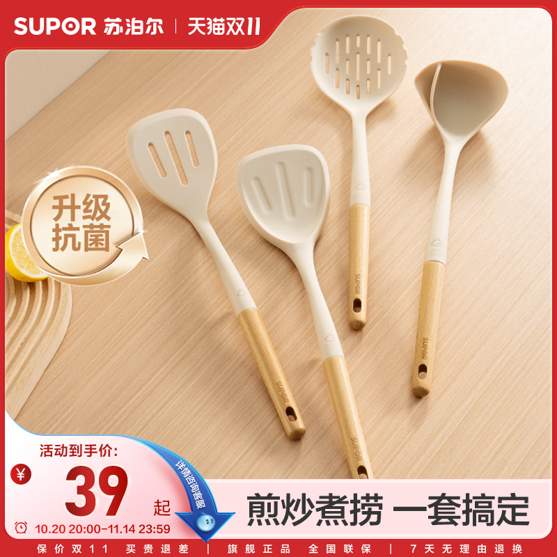 苏泊尔硅胶锅铲家用炒菜铲子炒勺不粘锅专用汤勺漏勺母婴厨具套装