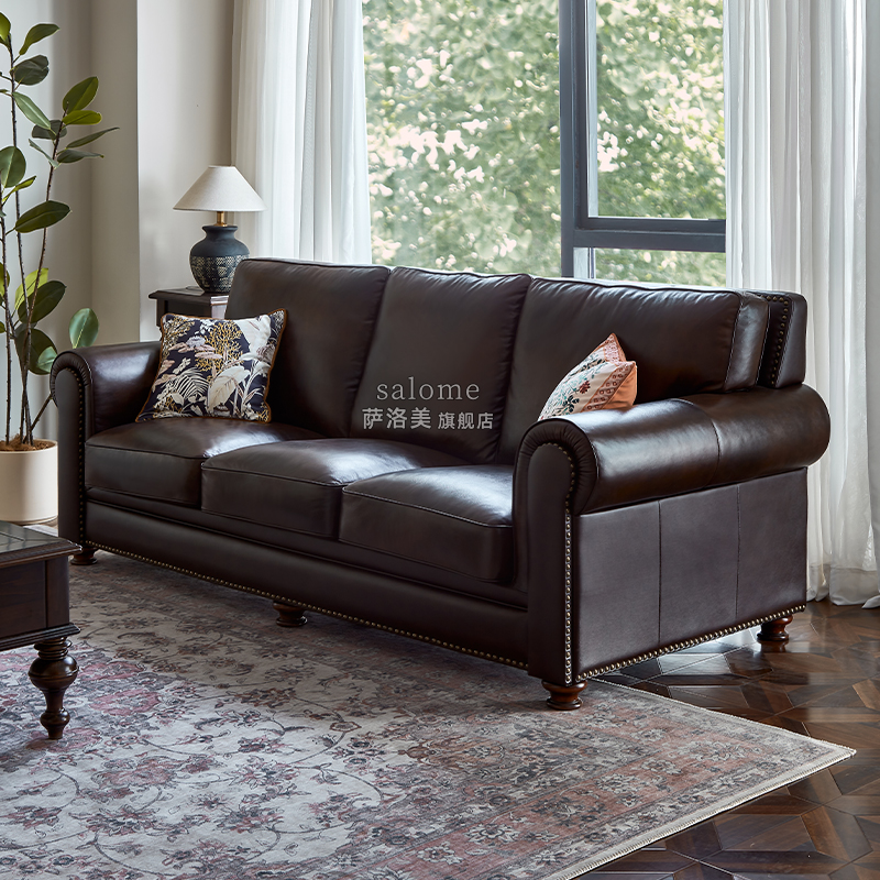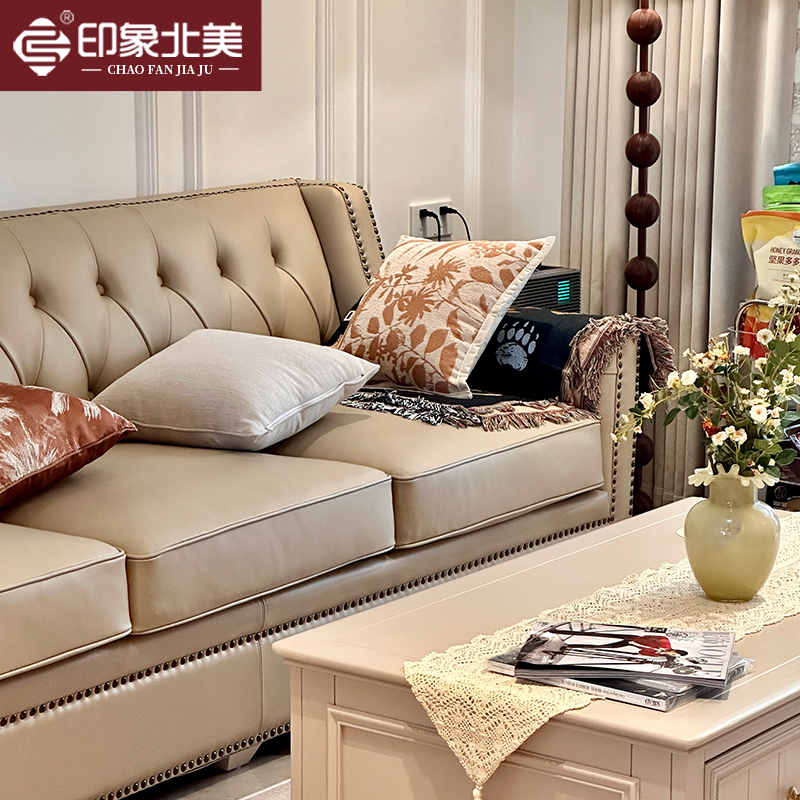 印象北美简约美式真皮沙发组合三人位奶油风客厅头层牛皮沙发座椅