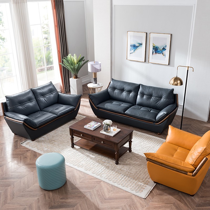 美式乡村真皮沙发美式真皮沙发头层牛皮客厅简约家具皮加布艺组合
