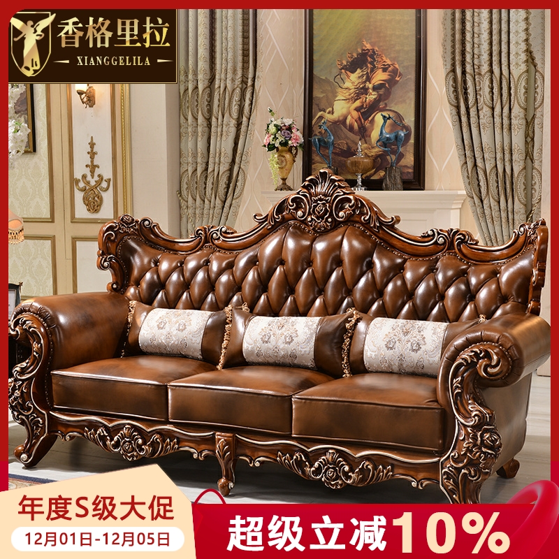 奢华别墅家具高端美式真皮沙发复古头层牛皮欧式实木梳化客厅组合