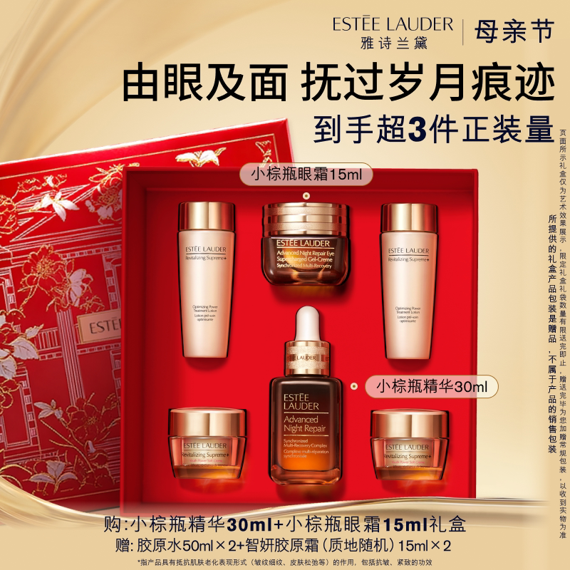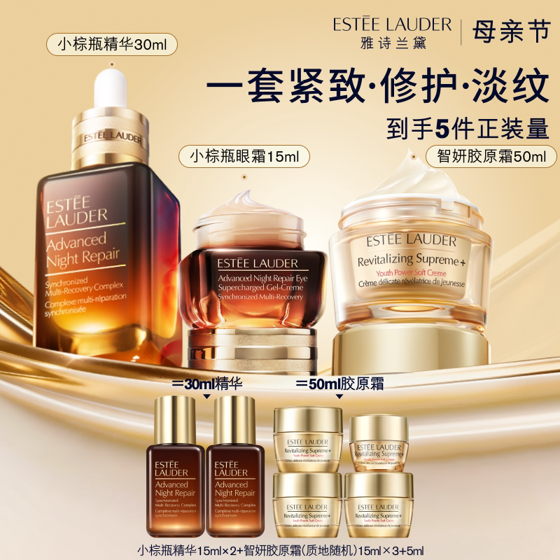 雅诗兰黛护肤套装 小棕瓶精华+眼霜+胶原霜 舒缓修护保湿紧致正品