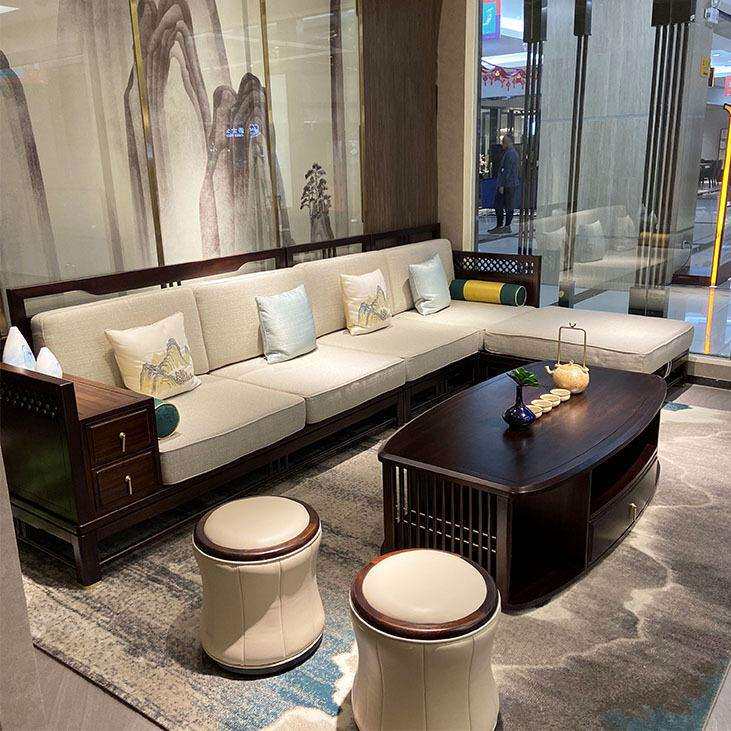 新中式沙发客厅实木布艺现代简约小户型沙发贵妃转角家具组合套装