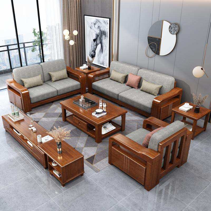实木沙发胡桃木小户型组合现代简约中式轻奢客厅木质布艺家具套装