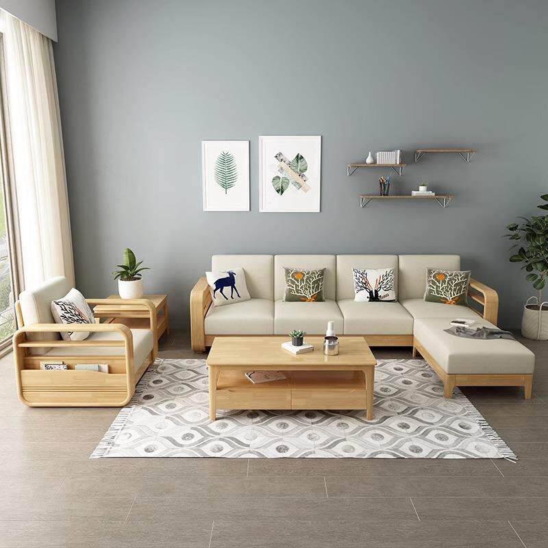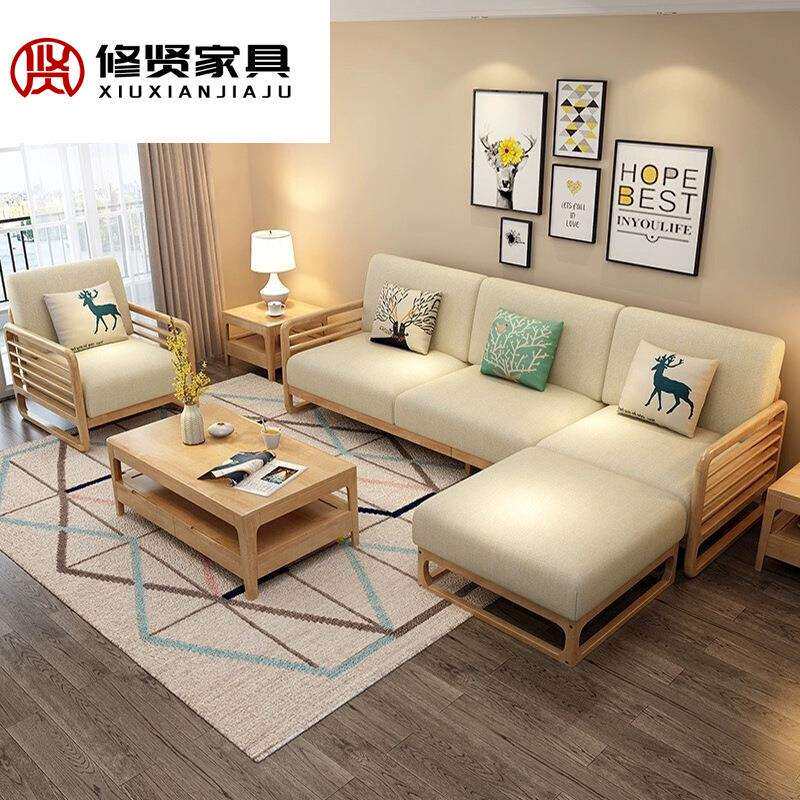 北欧实木沙发组合简约现代小户型家用客厅木质布艺原木色沙发套装