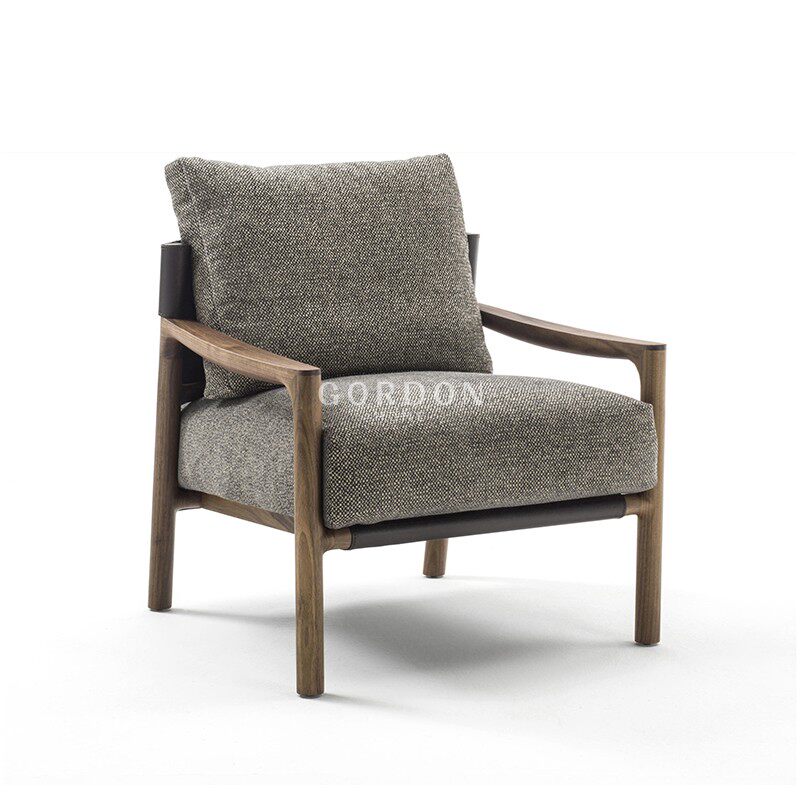 意式实木单人沙发椅子黑胡桃布艺软包坐垫躺椅阳台客厅卧室休闲椅