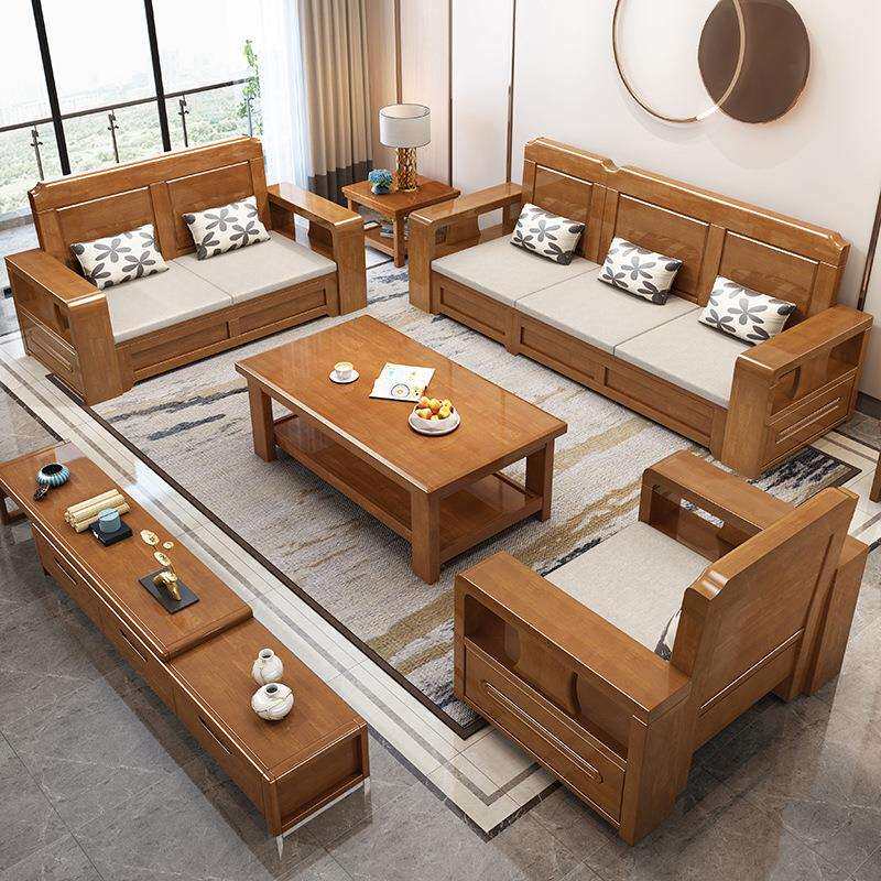 新中式全实木沙发现代简约大小户型客厅高箱储物木质布艺沙发套装