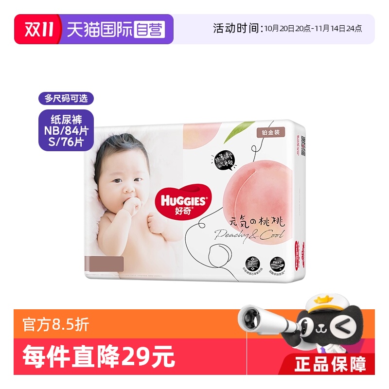 【新生儿】好奇铂金装纸尿裤NB84/S76透爽散热尿不湿小桃裤官方