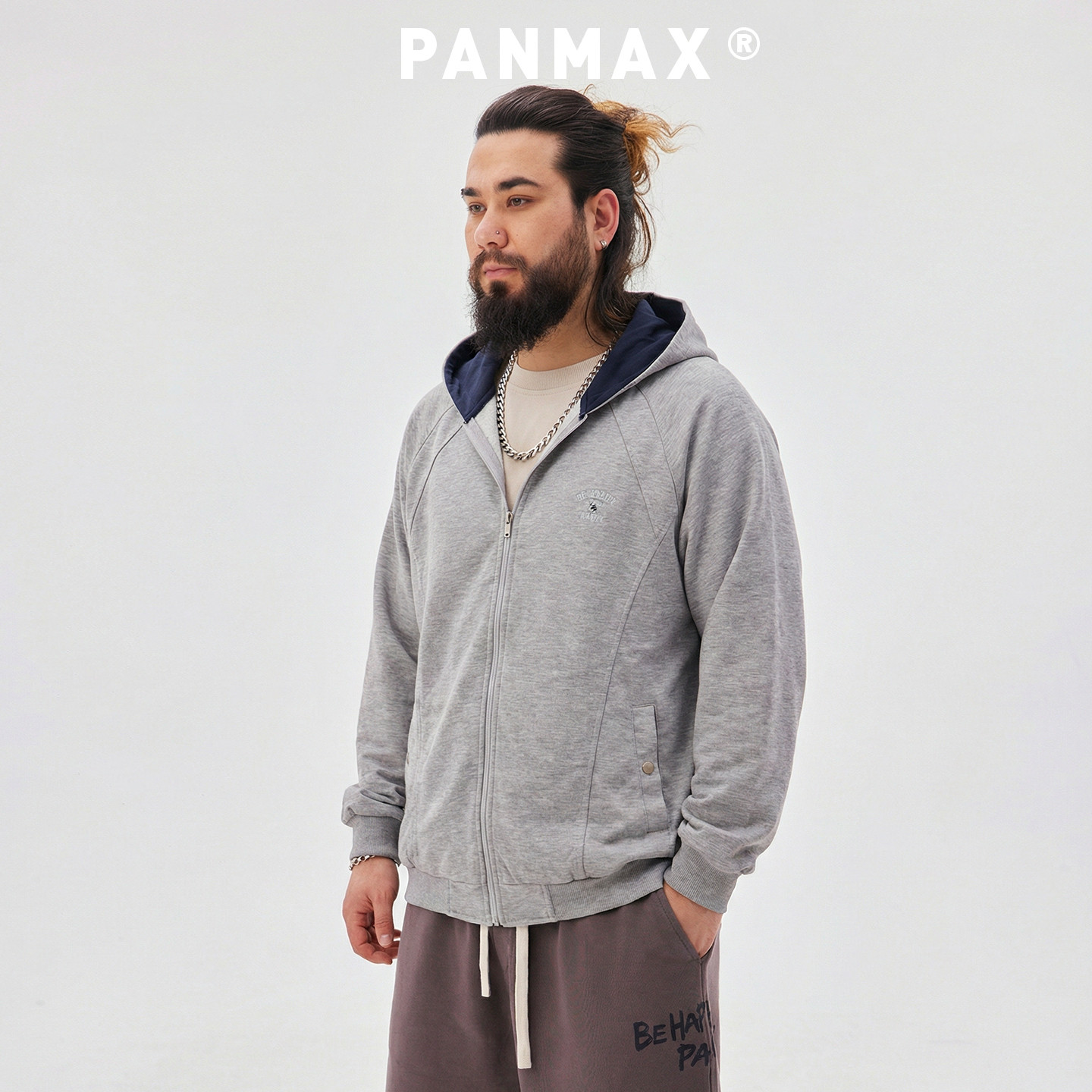 PANMAX潮牌大码男装秋冬新款连帽外套宽松绒面保暖拉链卫衣