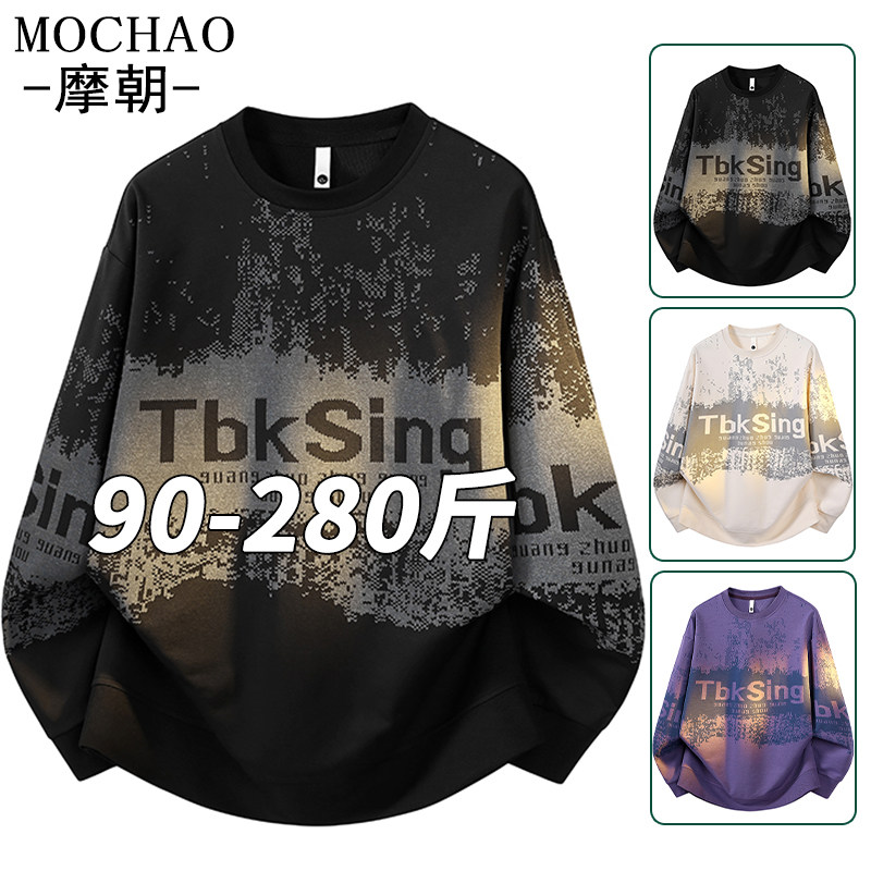 摩朝大码卫衣男圆领美式风宽松加肥加大字母印花长袖上衣百搭潮牌