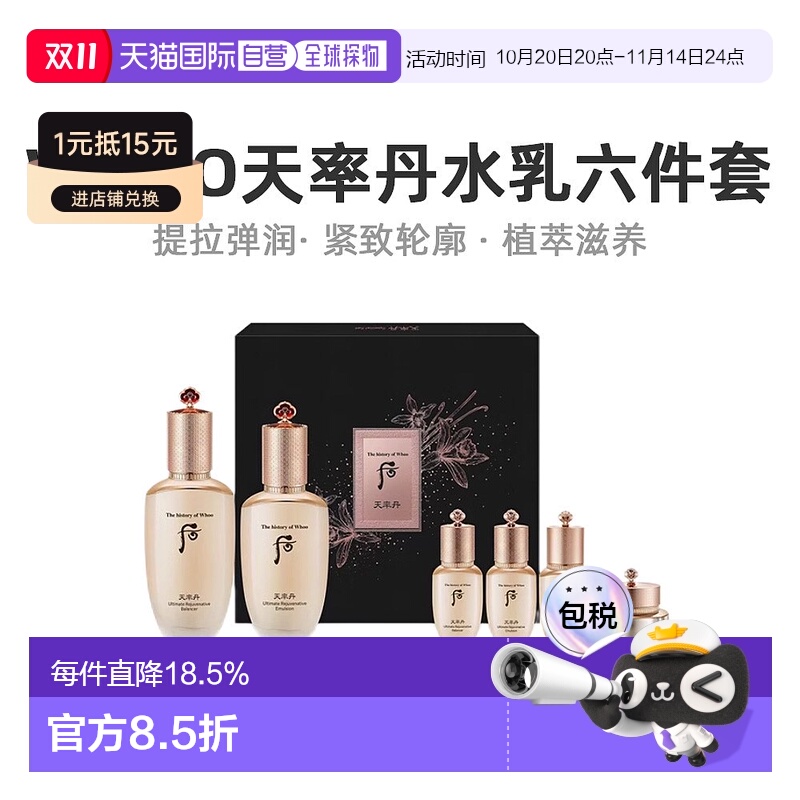 whoo后套盒拱辰享气韵生水乳6件套装官方旗舰店正品护肤品礼盒装