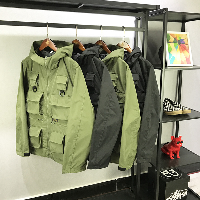 日系复古潮牌多口袋风衣男女款宽松机能风工装外套原宿连帽冲锋衣