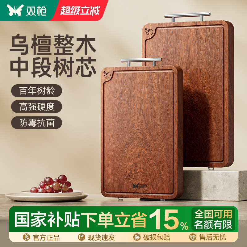 双枪整木乌檀木切菜板实木菜板防霉抗菌家用食品级案板厨房粘砧板