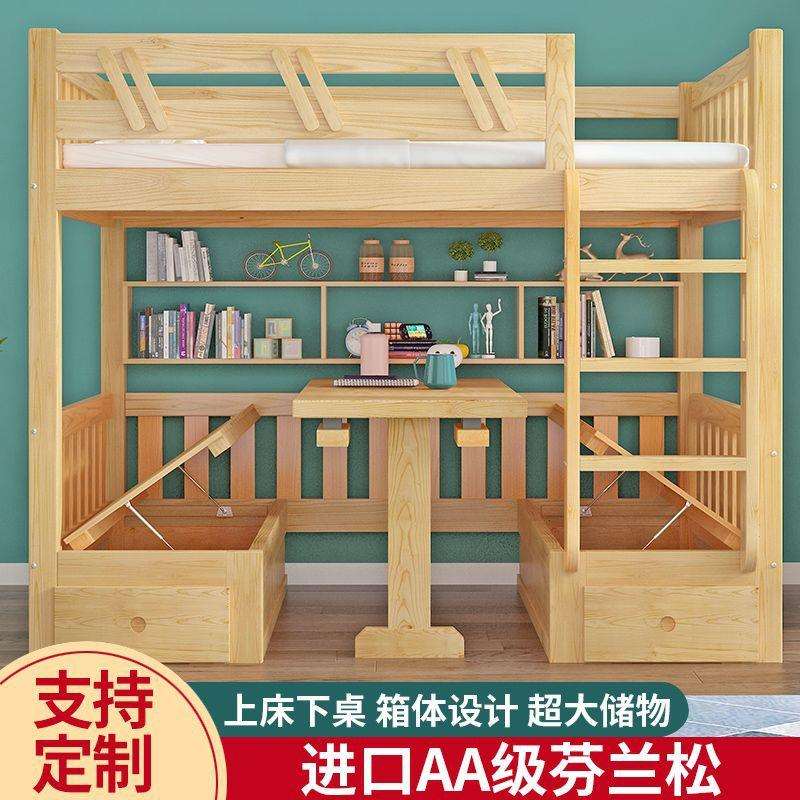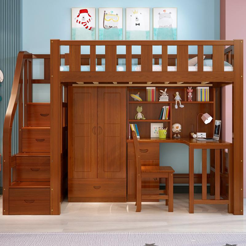 高架床带书桌实木多功能组合床儿童双层高低床上下床梯柜上床下桌