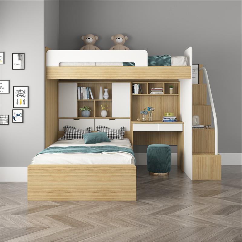 交错式双层床高低床儿童上下床书桌一体组合床小户型上床下衣柜床