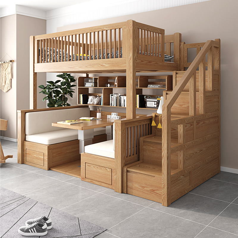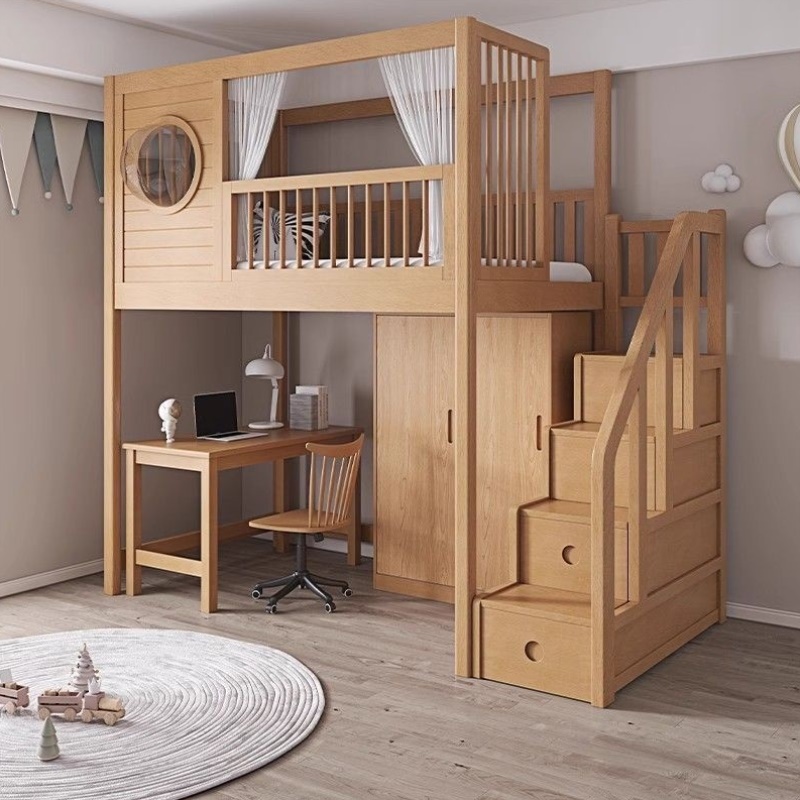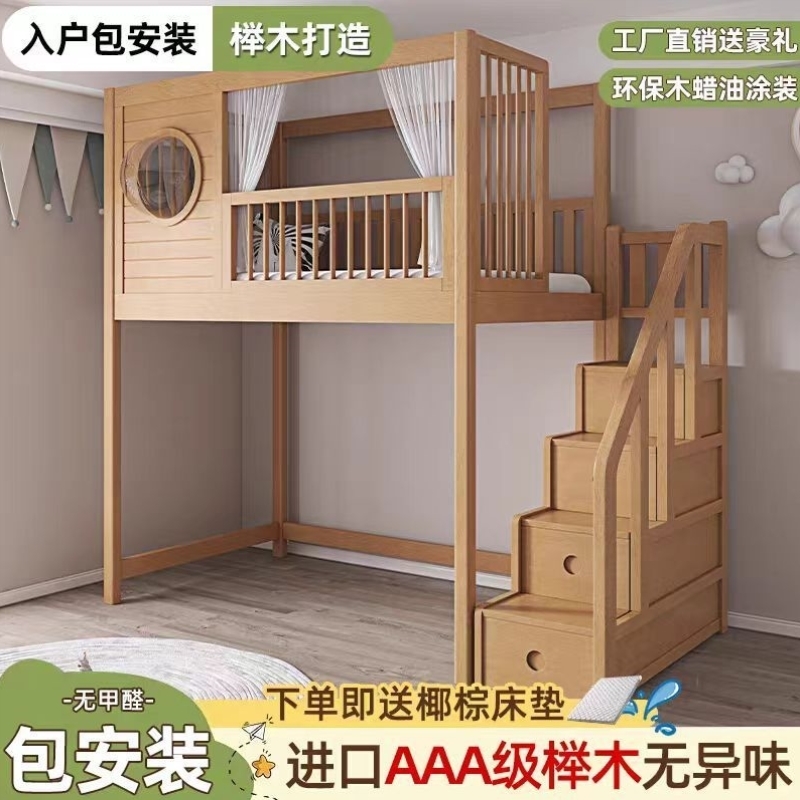 儿童上下床双层上床下桌高架床上下铺高低子母床榉木组合上床下空
