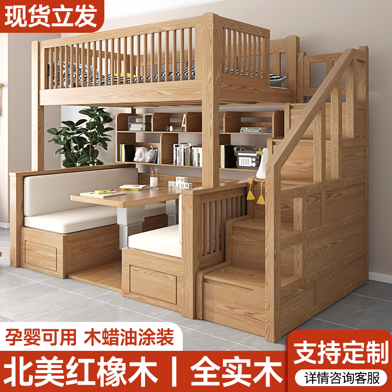 上下铺双层床红橡全实木儿童小户型上下床拆分高低子母床上床下桌