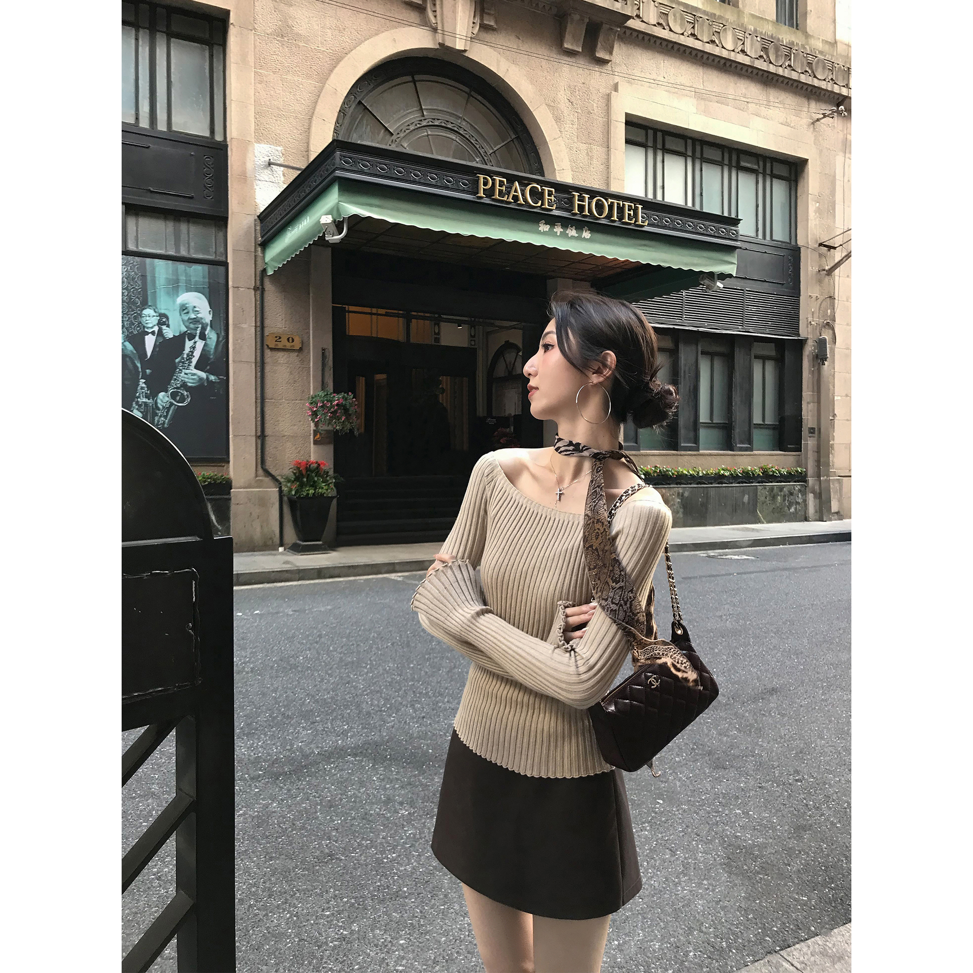 咖色皮裙半身裙女秋冬短裙褶皱设计感高腰a字裙包臀显瘦pu皮裙子