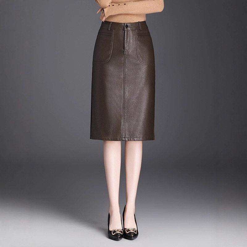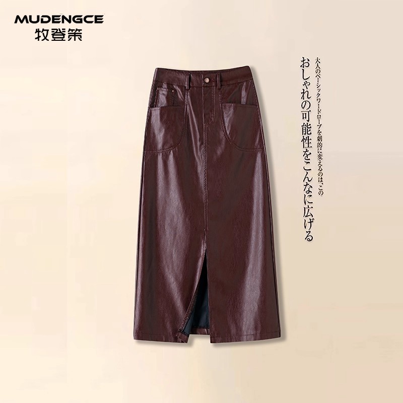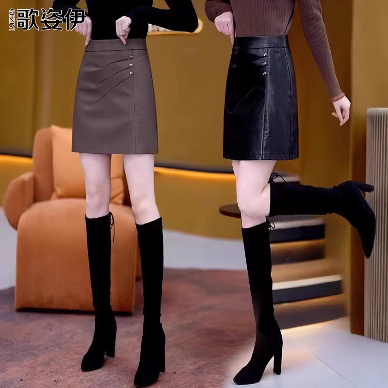 - 大码皮裙半身裙 a字裙