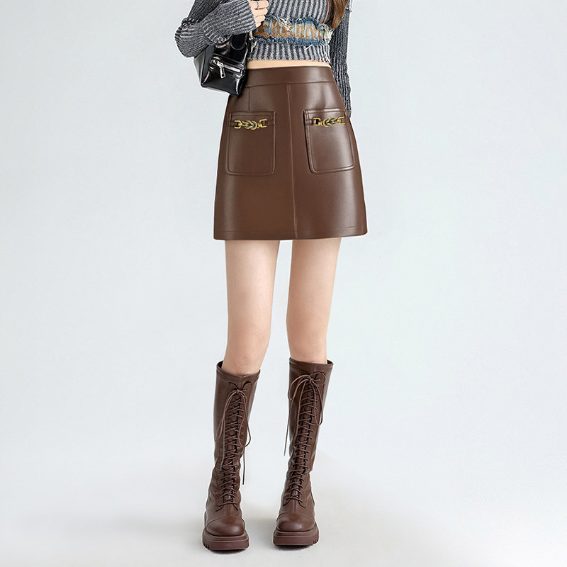 - 棕色半身裙